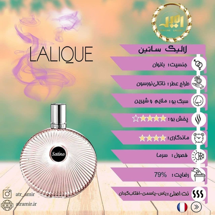 ------------------------------------------------------------ #لالیک#عطرلالیک#عطر ساتین#لالیک_ساتین #ایوسن_لورن#عطرامیر #عطرامیرپاسداران #عطرلاکچری #عطرلاکچری_زنانه #عطرکادویی #عطرعشق #عطر_اورجينال #perfume #perfumeysl #lalique #laliqueperfume #laliquesatine #lamour #atr_amir #atramir #perfumeamir #ysl #fregrance